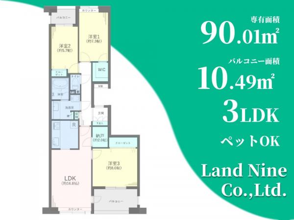幕張ベイタウン内、所有権のマンション♪約90平米の大空間を新規内装フルリノベーション完了済み!WICに納戸等収納豊富な間取り♪小学校徒歩3分のため、子育て世帯にもおすすめの住環境♪本日内覧可能です♪